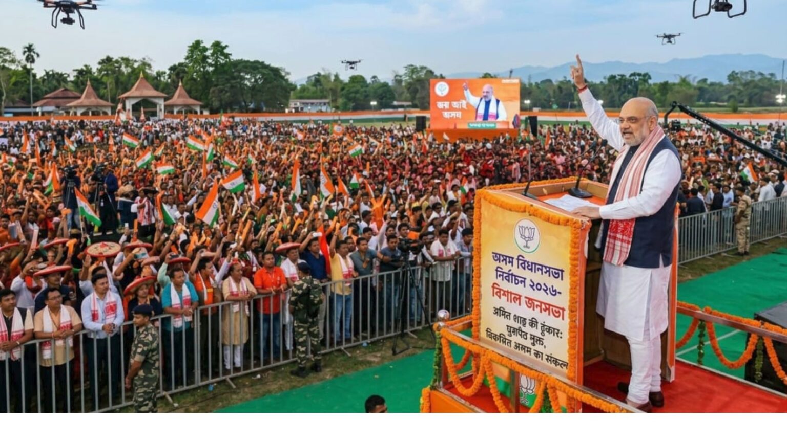 असम विधानसभा चुनाव 2026 के लिए प्रचार के अंतिम दौर में,केंद्रीय गृह मंत्री और भाजपा के वरिष्ठ नेता अमित शाह
